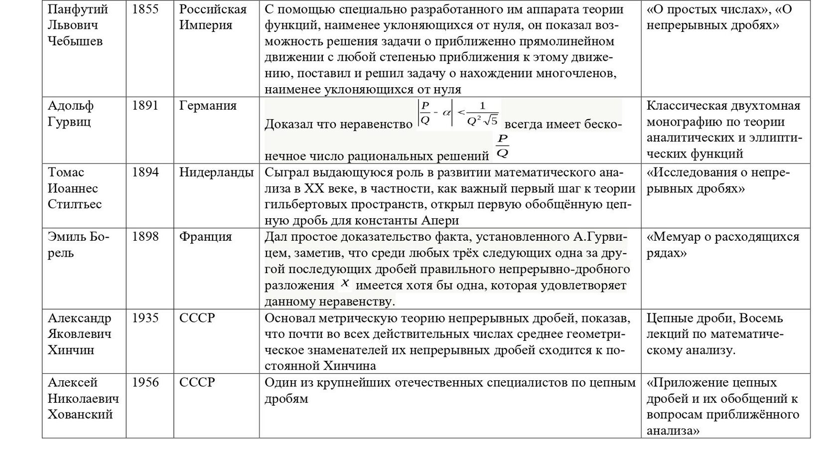 А.Н.Хованский (1916-1996) - одним из ведущих учёных специалистов в области цепных дробей в СССР и за рубежом, опубликовал монографию «Приложение цепных дробей и их обобщений к вопросам приближённого анализа»